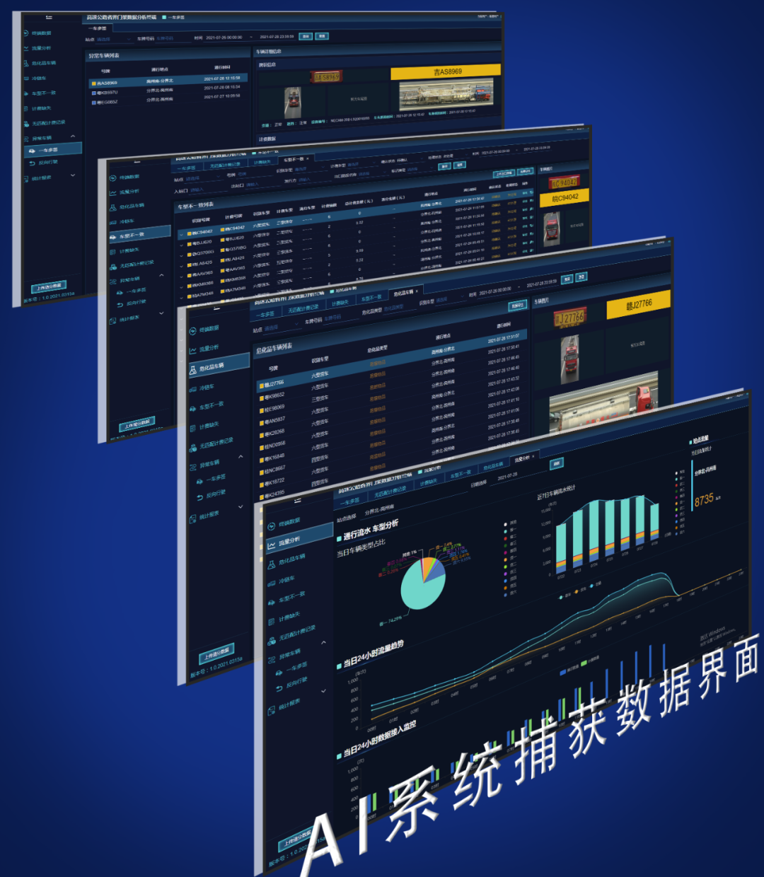 該系統(tǒng)主要基于智能視頻識別技術(shù),對車輛進行連續(xù)掃描、檢測、識別,輸出車輛車型軸數(shù)、外廓尺寸等信息及車身高清圖片,再與ETC門架計費的車牌、車型和軸數(shù)信息自動匹配,自動生成車型不符的車輛流水。