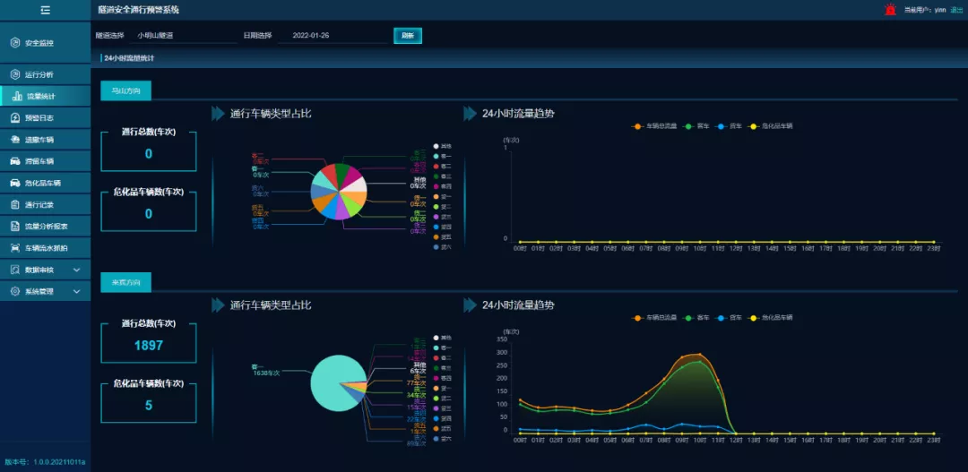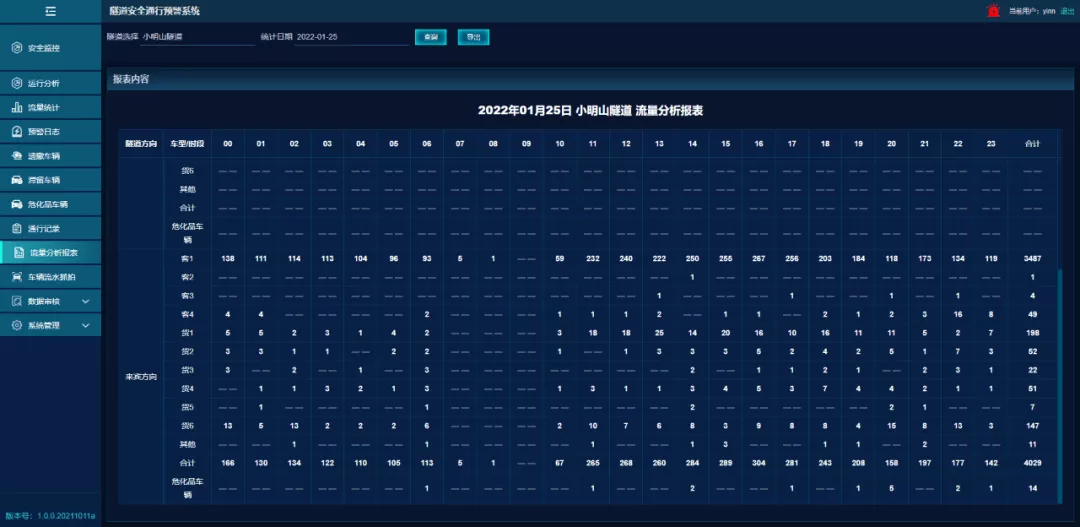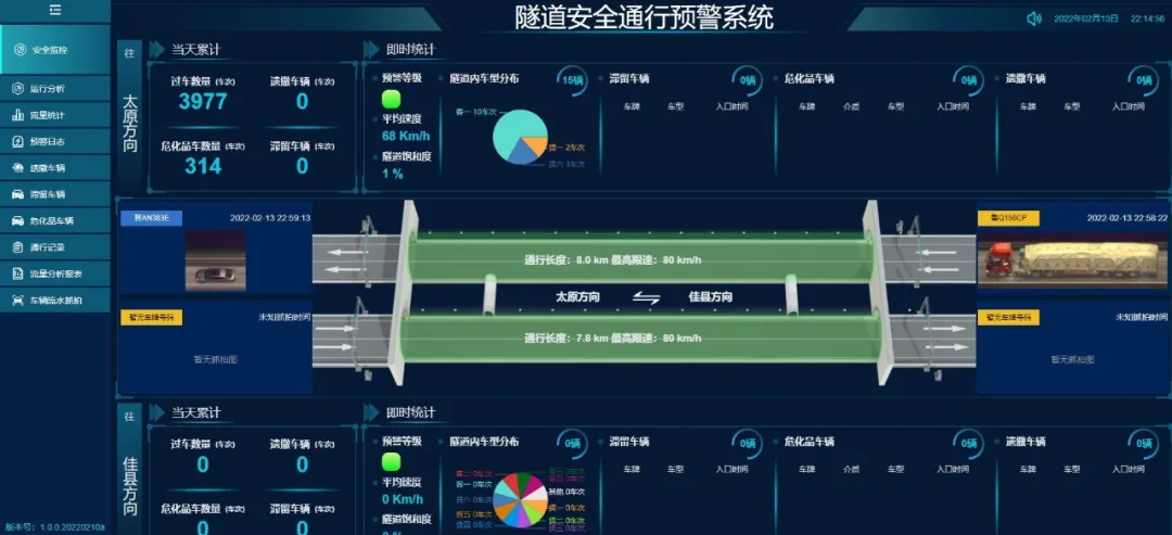 該系統(tǒng)能夠通過(guò)西凌井特長(zhǎng)隧道出入口視頻監(jiān)測(cè)卡口和車型識(shí)別功能,準(zhǔn)確掌握隧道內(nèi)車輛的實(shí)時(shí)數(shù)量、車型、車牌及車輛圖像,進(jìn)一步精準(zhǔn)判別?;奋囕v,并根據(jù)隧道區(qū)間里程長(zhǎng)度、限行速度計(jì)算隧道內(nèi)車輛理論通行時(shí)間,對(duì)超時(shí)未閉合信息的車輛及時(shí)提示預(yù)警。同時(shí)該系統(tǒng)還具備車輛統(tǒng)計(jì)、數(shù)據(jù)分析、數(shù)據(jù)導(dǎo)出等功能,為隧道通行狀況分析統(tǒng)計(jì)提供了有力數(shù)據(jù)支撐,配合隧道視頻監(jiān)控和視頻事件檢測(cè)系統(tǒng),成功實(shí)現(xiàn)了隧道?;奋囕v運(yùn)行動(dòng)態(tài)監(jiān)測(cè)。該系統(tǒng)相比國(guó)內(nèi)部分路段采用的毫米波雷達(dá)跟蹤辨識(shí)技術(shù),費(fèi)用僅是其十分之一,且施工周期不到一周,有著投資小、工期短、見效快的顯著優(yōu)勢(shì)。