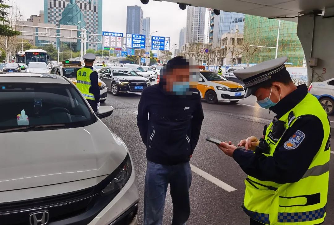 3月18日下午,在京漢大道武勝路口,硚口交警許堯、嚴(yán)木林根據(jù)手機(jī)上彈出的提示信息, 20分鐘之內(nèi)連續(xù)查獲3輛逾期未年檢的車輛,均處以罰款200元、計3分的處罰。