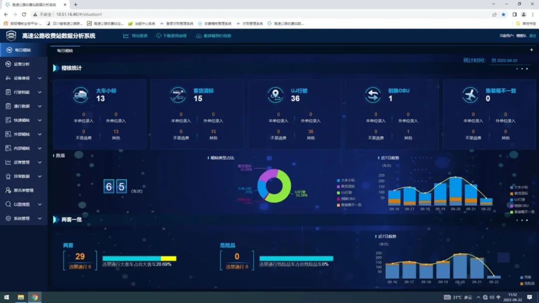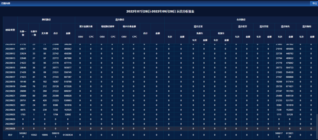 通過系統(tǒng)可了解路段通行的重點關注車輛通行信息,為道路安全通行管理提供數(shù)據(jù)支持;并對運行分析、每日稽核、流水記錄進行數(shù)據(jù)統(tǒng)計,使路公司及時掌握高速全路段通行情況。