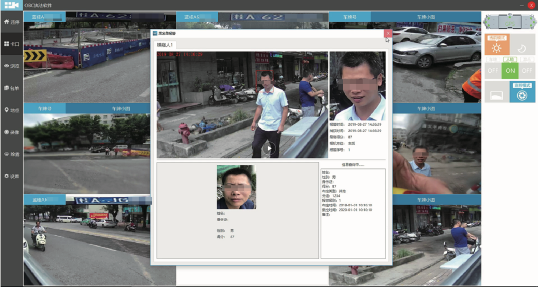 7路攝像頭可同時采集視野范圍內(nèi)的車輛和人臉信息并上傳,捕獲率≥95%,識別率≥95%。車輛和人