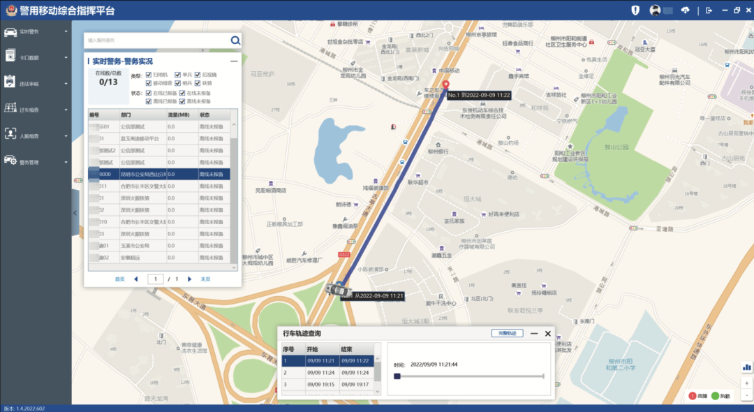 指揮中心可查看警車實時位置、巡邏路徑、實時監(jiān)控、歷史數(shù)據(jù)等,方便遠程指揮調(diào)度。