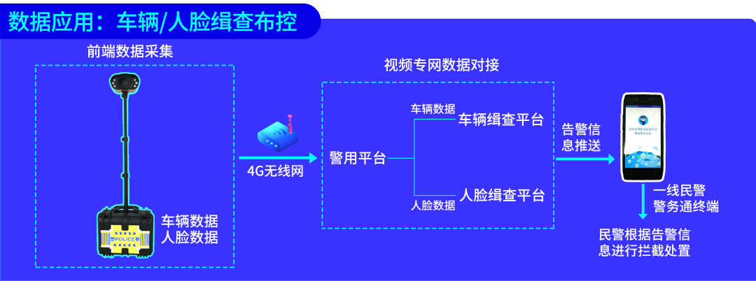 在布控點(diǎn)前200-500米處布設(shè)設(shè)備,車輛黑名單下發(fā)設(shè)備,設(shè)備自動(dòng)檢測(cè)通行車輛車牌號(hào)并與黑名單對(duì)比匹配,一旦發(fā)現(xiàn)黑名單車輛,立即在手機(jī)端APP發(fā)出語音和振動(dòng)警報(bào),具有實(shí)時(shí)性高,延遲低的優(yōu)勢(shì)。