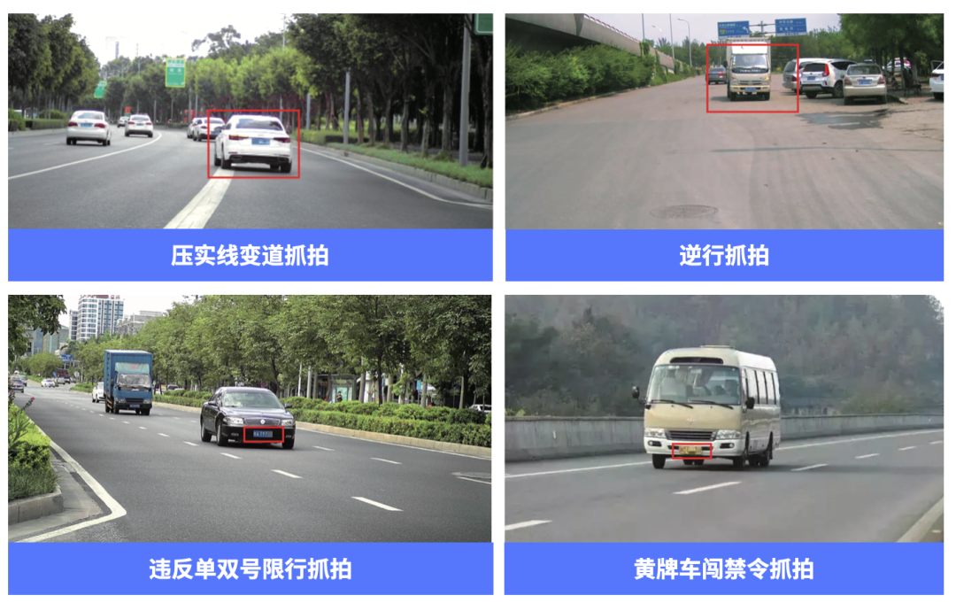自動(dòng)抓拍通行車輛壓實(shí)線變道、車輛逆行、違法單雙號(hào)限行出行、黃牌車闖禁令的交通違法行為,生成符合要求的違法證據(jù),并實(shí)時(shí)上傳到公安集指平臺(tái)。