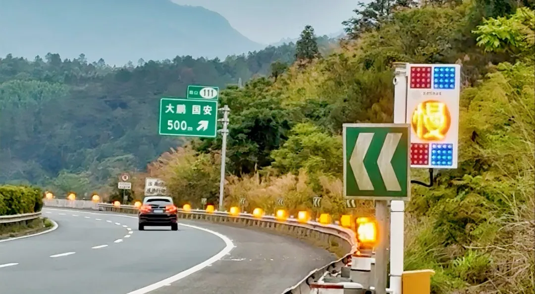 誘導衛(wèi)士作為入選交通運輸部第二批高速公路監(jiān)測預警應用示范揭榜項目中的核心模塊產品,獲得國家級權威認可。目前已在梧柳高速等重點路段試點應用?!罢T導衛(wèi)士可以通過爆閃警示燈、誘導燈、簡易文字提醒與擴音主動提示動態(tài)路況變化。司乘人員在事故多發(fā)區(qū)域、夜間、雨霧天等能見度低條件下,也能清晰接收道路走向指引?!蔽嘀葸\營公司平南分公司養(yǎng)護工程師黃永杰一邊檢查著誘導衛(wèi)士一邊介紹道。相比傳統(tǒng)固定式設備,誘導衛(wèi)士采用模塊化設計,可快速部署于邊坡塌方、急彎陡坡等高速公路風險點。